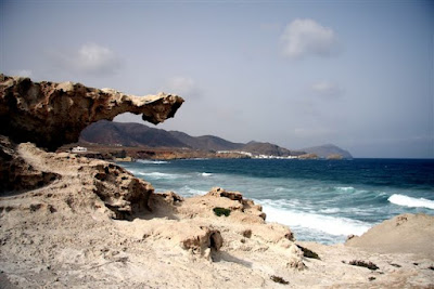Otra hermosa playa y otra hermosa población, en este caso Las Negras; un pueblecito oriental, con su mar y azul y sus casitas blancas, con algunas palmeras y una enorme tranquilidad (como se aprecia en la fotografía). Pueden ser imaginaciones mías pero siento que ese silencio es el que nos permite volver a encontrarnos con nosotros mismos y, de alguna manera, nos ayuda a recuperar el tiempo perdido.